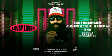 The Factory X Listen Bringing the iconic Ibiza party spirit to the heart of Brooklyn LOUSY LOVER talent and a renowned DJ From Brooklyn Miami and Ibiza will be taking over the decks SUPPORT BY ICE THOMPSON JUAN JIMENEZ B2B FELIPE LOMBANA HENRY HNLT BODEGA (SPECIAL CLOSING SET delivering those irresistible vibez Make sure to secure your advanced tickets to save and party till dawn! Not To be missed Doors 10:00pm Till late