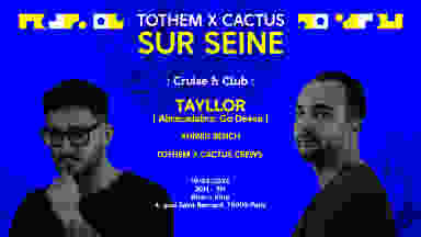 Les collectifs parisiens TOTHEM et CACTUS s’allient pour vous offrir à nouveau une croisière qui s'annonce inoubliable, le vendredi 19 avril, de 20h à 5h avec un format croisière sur Seine et club @River's King (même bateau toute la soirée):