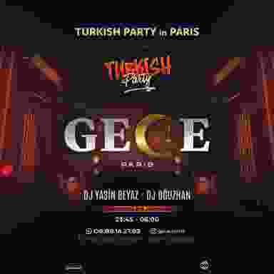 GeCe Paris - Turkish Clubbing Party Nouvelle Soirée Turque sans changer les ingrédients, avec le concept Clubbing unique et convivial Vendredi 24 janvier, 23:45 - 06:00 Dj Yasin Beyaz et Dj Oguzhan pour vous ambiancer jusqu'à l'aube, avec les meilleurs sons Turcs du moment et d'avant, et autres musiques du monde Lieu : La CASA, 15 rue Daval, Paris 11 Préventes à 10€ pour les femmes, ou 20€ sur place Préventes à 15€ pour les hommes accompagnés, ou 20€ sur place Tables de réservations au 06.89.14.27.93 Tenue Correcte Exigée - Messieurs Obligatoirement Accompagnés, refus possibles si non accompagnés LA DIRECTION SE RÉSERVE LE DROIT D'ADMISSION