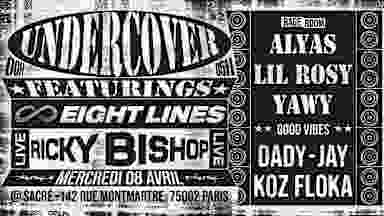 UNDERCOVER #29 FEATURING EIGHT LINES + LIVE RICKY BISHOP   NOUVELLE SEMAINE = NOUVEAU COLLECTIF EN FEAT 🤝 CE MERCREDI ON S'ASSOCIE AUX PARISIENS DE EIGHT LINES POUR MARQUER LA SORTIE DE LEUR NOUVELLE COLLECTION INSPIRÉE DE LA GUADELOUPE 🦎 QUOI DE MIEUX POUR FÊTER QUE RICKY BISHOP EN LIVE 🤩   EN RAGE ROOM : •⁠ ⁠YAWY •⁠ ⁠ALYAS •⁠ ⁠LIL ROSY LA GOOD VIBES : •⁠ ⁠DADY •⁠ ⁠KOZ FLOKA •⁠ ⁠JAY MERCREDI 08 AVRIL 00:00-05:00 SACRÉ CLUB 142 Rue Montmartre, Paris 75002 +18 ONLY CARTE D’IDENTITE DEMANDÉE À L’ENTRÉE