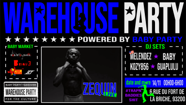 WAREHOUSE PARTY BY BABYPARTY EDITION « SAMBO GANG ♿️🙅🏾‍♂️ » LIVE BY ZEQUIN SOUND BY : MELENDEZ 🇺🇸 KOZY856 GUAPLULU BABY THEME : TRAP - RAP US/FR/UK - NEW WAVE - BOUYON 14 NOVEMBRE — 00:00 À 06:00 6 RUE DU FORT DE LA BRICHE, 93200, SAINT-DENIS DON’T MISS OUR RAVE 💋‼️