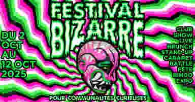 Festival LGBTQ+ pour, par et avec notre communauté, Bizarre s’étend sur 11 jours, 3 lieux et des dizaines de rendez-vous : nuits fiévreuses, cabarets déviants, fêtes collectives, expositions, brunchs familiaux et surprises en cascade.