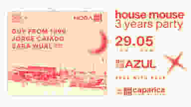 Azul Beach Club sets the scene for the final party before the IN festival kicks off, celebrating House Mouse’s 3rd anniversary. The Lisbon-based collective, dedicated to pure house music, curates an evening of deep, groovy sounds and carefree dancefloor energy.