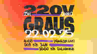 União em alta voltagem! ⚡🔥 O fio desencapado já está no chão e a energia vai ser tanta que o calor vai derreter os sistemas. A união de eletricidade e distúrbios traz a fusão perfeita para alcançar o ponto de ebulição. transformando ideias em materia, ondas em passos de danças e calor em energia. A sintonia entre os coletivos promete transformar essa noite em algo único e inesquecível. O choque já é inevitável. Sábado, 22/02, o Rio vai derreter com o pré-carnaval 220 GRAUS. _______________________ High Voltage Union! The exposed wire is already on the ground, and the energy will be so intense that the heat will melt the systems. The union of electricity and disruptions creates the perfect fusion to reach the boiling point, turning ideas into matter, waves into dance moves, and heat into energy. The synergy between the collectives (@220v + @GrausdeDisturbio) promises to make this night something unique and unforgettable. The shock is already inevitable. Saturday, 02/22, Rio will melt with the 220 DEGREES pre-carnival.
