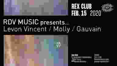 - RDV Music presents: Levon Vincent, Molly, Gauvain - ▬▬▬▬ LINE UP ▬▬▬▬ Levon Vincent Molly Gauvain ▬▬▬▬ INFOS PRATIQUES ▬▬▬▬ 23H55 – 07h00 SUR PLACE : 20€ SHOTGUN : 15€ (+loc) : DIGITICK : 15€ (+loc) : RA: https://www.residentadvisor.net/events/1374864 Comptez sur Kapten pour votre aller/retour du #RexClub ! Par ici pour en profiter : https://welcome.kapten.com/?promocode=REX50