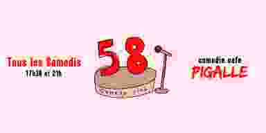 La scène ouverte du 58 Comedy Club, 8 artistes, du débutant prometteur à l'expert aguerri, se passent le micro pour venir tester leurs blagues ; l'occasion de découvrir en exclusivité la scène de demain !