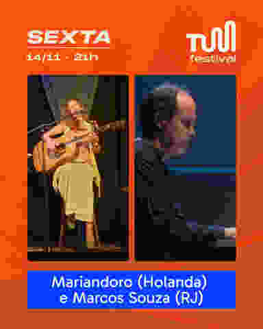 Na sexta, 14 de novembro, a casa abre suas portas às 12h e às 21h o palco ganha vida com Mariondoro (Holanda) e Marcos Souza (RJ) — uma fusão potente de sons que atravessam fronteiras e conectam culturas 🌍🎹