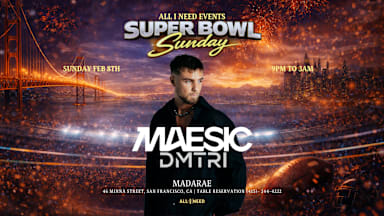 All I Need Events invites you to a VERY SPECIAL NIGHT with MAESIC + Dmtri and many more special guests at MadaRae. You never know who might show up 👀🔥