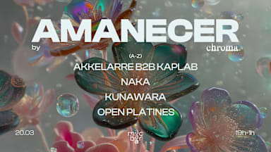 AMANECER by Chroma 🌸 Les beaux jours reviennent, le printemps s’installe, le soleil ressort… et chez Chroma, on célèbre ça avec un before caliente comme il faut 🌞 Pour cette édition, on prend le contrôle du mythique MacBar pour une soirée aux sonorités solaires, percussives et résolument latin tech, portée par des sets groovy et un line-up 100 % local. Nous avons le plaisir d’inviter NAKA, cofondateur du Club Silk, qui viendra partager son univers groovy pour vous faire danser comme il faut. Et bien sûr, nos résidents seront également là pour faire monter la température et vous embarquer jusqu’au bout de la nuit ;) On se retrouve sur le dancefloor ? Infos pratiques 📍 MacBar — 81 Quai Charles de Gaulle, 69006 Lyon 📆 Vendredi 20 mars 🕰️ 19h00 – 01h00 🎟️ Entrée à prix libre 🎶 Styles : Latin Club, Groove, Latin Bounce SAFE SPACE 🫶🏼 Les soirées Chroma sont des espaces libres, inclusifs et bienveillants. Tout comportement raciste, homophobe, transphobe, sexiste ou violent entraînera un refus d’admission ou une exclusion immédiate. Nous nous réservons le droit d’admission.