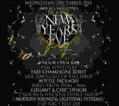Wednesday, December 31, 2025 - Ammos New Year’s Eve 2026 Party | Midtown Manhattan Open Bar & Bottle Service NYE 10:00 PM – 5:00 AM Ammos NYC | 52 Vanderbilt Ave & 45th Street | Midtown Manhattan | Near Grand Central Station Celebrate New Year’s Eve 2026 in Midtown Manhattan at Ammos NYC, transformed for one night only into a high-energy New Year’s Eve party destination just steps from Grand Central Station. This is not a sit-down dinner — this is a late-night NYC NYE party featuring DJs, dancing, open bar tickets, bottle service, and a fashionable Manhattan crowd ringing in the New Year until sunrise. If you’re searching for New Year’s Eve parties in Midtown Manhattan, NYE club-style events near Grand Central, or New Year’s Eve open bar parties NYC, Ammos delivers a nightlife-forward celebration in one of the most central locations in New York City. NYE 2026 Party Experience at Ammos NYC On Wednesday night, December 31st, Ammos shifts from day-time elegance to a full New Year’s Eve party atmosphere. Expect packed dance floors, DJs spinning all night, VIP bottle service, and a countdown filled with champagne, music, and energy. This is a New Year’s Eve party for people who want to dance, socialize, and celebrate in Midtown — not a quiet restaurant experience. Event Details Doors Open: 10:00 PM Party Until: 5:00 AM Age Requirement: 21+ with valid ID Dress Code: Dress to Impress (Doorman’s discretion strictly enforced) Ticket Options $30 – General Admission Entry from 10:00 PM – 12:00 AM $60 – 2-Hour Open Bar + Small Bites Open Bar from 10:00 PM – 12:00 AM Includes party entry and light bites PDF ticket confirmation required for entry Bottle Service & VIP Tables (Advance RSVP Required) All bottle packages include admission for 4 guests Cash prices shown (credit card payments subject to tax & gratuity) Silver Package – $550 2 Bottles Choice of Grey Goose, Tito’s, Ketel One, Hennessy VS, Casamigos, Patron, Don Julio Blanco, or Jack Daniels Gold Package – $650 2 Bottles Choice of Don Julio Reposado, Hennessy VSOP, or Moet Nectar Rosé Champagne Package – $650 4 Bottles Choice of Moet Chandon Imperial Brut or Rosé, Veuve Clicquot Yellow Label Platinum Package – $1,000 2 Bottles Don Julio 1942 or Clase Azul Music & DJs DJ Abrupt | DJ JVee | DJ Yung B Music genres include: Hip-Hop Classics & Throwbacks Afro Beats Reggaeton Perreo High-energy party vibes all night long. Location Advantage Located in Midtown Manhattan near Grand Central Station, Ammos NYC is easily accessible from Times Square, Murray Hill, Bryant Park, and the East Side, making it one of the most convenient New Year’s Eve party locations in NYC. If you’re looking for a true New Year’s Eve PARTY in Midtown Manhattan — with DJs, dancing, open bar options, and VIP bottle service — Ammos NYC is the move for NYE 2026.