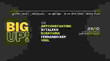 "BIG UP!" é uma festa de música dançante, onde pular e bagunçar é a premissa básica. Nessa edição de inauguração temos a honra de trazer pela primeira vez ANTCONSTANTINO, Dj e Produtor referência Nacional quando o assunto é Grime e música eletrônica. Além disso contaremos com a presença de pratas da casa para fomentarmos ainda mais a cena de música eletrônica e iniciarmos um circuito de troca entre artistas, produtores e público. LINEUP: ANTCONSTANTINO (Duque de Caxias) Taleko (São Pedro da Aldeira) Dj Rataria (Macaé) Fernando Kep (Macaé) Vinil (Rio de Janeiro) Dia 29/10/2022 Das 18h ás 00:00 Ateliê Teto Baixo - Rua Oito de Março, 67, Costa do Sol, Macaé-RJ Classificação 18 anos. Apoio: Roda Cultural de Macaé, Ateliê Teto Baixo e Leigo Records.