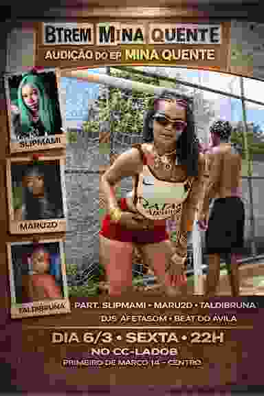 BTREM "MINA QUENTE" Sexta agora no CC-Ladob 06 de Março audição do EP MINA QUENTE part. Maru2D, Slipmami, taldiBruna DJS Afetasom Beat do Avila ❤️‍🔥Das 22h as 3h - Acesso único: [Primeiro de Março 14 - Centro do Rio]✨ ❤️‍🔥Respeitem a casa e o público - Cobrança Imediata ☝️🅱️