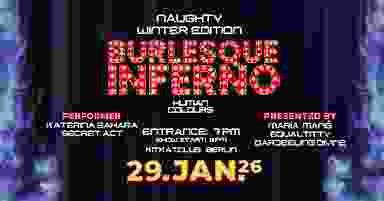 Attention please, Ticket Information!!! 2 Events for the price of 1 ticket. (Burlesque Inferno & Human Colours) The purchase of tickets does not entitle the holder to final admission. Please check our dress code and familiarize yourself with the event. Thank you __________________________________________________________ Experience the "Burlesque Inferno" – at the legendary KitKat Club in Berlin. Dive into a world of secrets where Burlesque, Drag, and futuristic sensual performances merge with the magical atmosphere of the KitKat Club. Enjoy breathtaking shows and discover the "Human Colours" concept, celebrating the diversity and individuality of humanity. Each evening is packed with hot and thrilling performances, hosted by Equaltitty and featuring acts by Maria Mané, Darjeeling Divine and many more.Dance and party the night away in a venue renowned for its sexual openness and tolerance. Please adhere to the strict dress code and the no mobile phone policy. Get inspired by the human colors and become part of an unforgettable night at the KitKat Club! Dresscode! -Deutsch- Erleben Sie das „Burlesque Inferno“ – im legendären KitKat Club in Berlin. Tauchen Sie ein in eine Welt voller Geheimnisse, wo Burlesque, Drag und futuristisch-orientierte sinnliche Darstellungen auf die magische Atmosphäre des KitKat Clubs treffen. Lassen Sie sich von den Flammen des Infernos verzaubern und entdecken Sie das Konzept der „Human Colours“, welche die Vielfalt der Menschheit feiert. Jeder Abend ist voller heißer und aufregender Shows, moderiert von Equaltitty und mit Auftritten von Maria Mané, Darjeeling Divine u.v.m. Tanzen und feiern Sie durch die Nacht an einem Ort, der für seine sexuelle Offenheit und Toleranz bekannt ist. Bitte beachten Sie die strikte Kleiderordnung und das Verbot von Mobiltelefonen. Lassen Sie sich inspirieren und werden Sie Teil eines unvergesslichen Abends im KitKat Club. Dresscode Elegant, creative, extravagant - latex, leather, burlesque outfits, fishnet or body paint. There are no limits to your imagination. No everyday clothes. ### Deutsch #BurlesqueInferno #KitKatClub #BerlinNights #HumanColours #SinnlicheNächte #BurlesqueShow #DragPerformance #FuturistischeSinne #FeuerUndFlammen #VerborgeneGeheimnisse #HeißeShows #MagischeAtmosphäre #StrikteKleiderordnung #UnvergesslicheNächte #ToleranzUndOffenheit #KeineHandys ### English#BurlesqueInferno #KitKatClub #BerlinNights #HumanColours #SensualNights #BurlesqueShow #DragPerformance #FuturisticSensuality #FireAndFlames #HiddenSecrets #HotShows #MagicalAtmosphere #StrictDressCode #UnforgettableNights #ToleranceAndOpenness #NoPhones