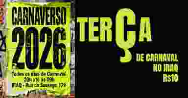 Depois de levarmos banho de cerveja quente e ouvir o Hino da Pitombeira pela 40ª vez... Bem-vindo ao CARNAVERSO 2026! 🏴‍☠️ No museu da cultura underground, a gente traz o confete e mistura Novos Baianos com Smack e o calor da multidão com o vaporzinho da nossa pista!!! Criado em 2022 quando a rua estava fechada, hoje somos o universo paralelo oficial do Carnaval recifense! CARNAVERSO 2026 - ANO V 🎸 Indie, brasilidades, no wave e aquele after que só o IRAQ sabe fazer!!! 💸 Só R$ 10 mangos (mais barato que o espetinho mais duvidoso do Marco Zero). 📍 Rua do Sossego, 179. Vem pro nosso universo, que o resto é simulação!! Uiuiui!!!!