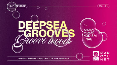 Deepsea Grooves invite Groove Woods 🪩 Le collectif du fond des abysses revient à La Péniche Marcounet le vendredi 19 décembre ⚓ Cette fois-ci, c'est Maisa et Unagi qui mènent la barque ! Ils seront très bien accompagnés de Mømø et Nodism Au programme : 6 heures de DJ sets House et Electro sur les quais de Seine ⛴️ LINE UP Unagi