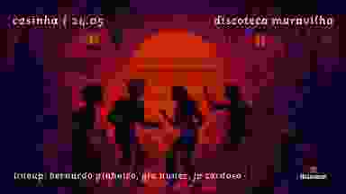 discoteca maravilha é uma pista otimista de música antiga pra cuidar dessa vontade de ouvir um som incrível pela primeira vez misturada com a vontade de ouvir todo mundo cantando junto sendo feliz sem carão tudo pode acontecer depois do show do air aqui não tem musica ruim ruim é perder o celular no centro tentando ver show lotado enquanto você podia estar bailando com seus amigos aqui no nosso esconderijo HORÁRIOS 21h: JP Cardoso 22h30: JP b2b Bernardo 23h30: Bernardo Pinheiro 01h: Giu Nunez 03h: JP Cardoso