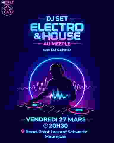 🎧 DJ Set Electro au Meeple 🗓 Vendredi 27 mars 🕣 À partir de 20h30 📍 Meeple - Rond Point Laurent Schwartz, Maurepas Prépare-toi à faire vibrer tes neurones (et tes baskets) ! Ce vendredi, le Meeple passe en mode électro pour une soirée sous haute tension ⚡ Au programme : 🎶 House, techno, electro-pop, synthés planants et kicks puissants 🎛️ Des sets calibrés pour te faire danser, kiffer, décoller 🌌 Une ambiance électrique 📢 Entrée libre - ambiance garantie, câbles branchés et bpm au taquet