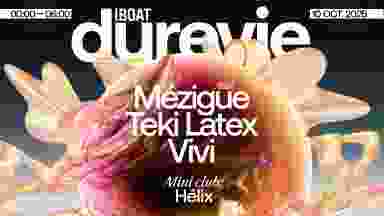 Une grande soirée tout-terrain de styles avec en tête de file Teki Latex, véritable électron libre de la scène française, maître des sets hybrides et imprévisibles, rejoint par Mézigue, producteur masqué aux grooves acides et festifs, et Vivi.