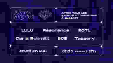 Jeudi 26 mai, rendez-vous pour un nouveau plateau techno qui donne chaud avec Dusk x After O'Clock : LULU, Resonance, BOTL, Carla Schmitt, BĐS, Tassery.