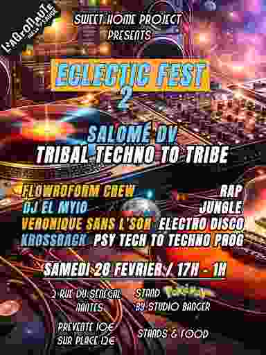 🚀 Préparez-vous pour une soirée inoubliable à L'Agronaute le 28 février ! 🚀 Dès 17h, embarquez pour un voyage musical captivant ! On démarre en force avec le Flowroform Crew et leur concert Rap énergique. 🎤 La nuit s'annonce ensuite explosive avec un line-up de DJs qui vont vous faire vibrer : 🎶 Liquid Drum'n'Bass 🎧 Techno Groovy 🌀 Psy Techno 🔥 Tribal Techno to Tribe Aux platines, un casting de choc : El Myio, Krossback, Marge et pour un final en apothéose, Salomé dv ! ✨ Et pour sublimer l'ambiance, on vous a concocté une déco complètement dingue : guitares repeintes, touches de verdure, et panneaux peints en mode UV pour une expérience visuelle immersive ! ✨ Sans oublier, pour compléter l'expérience : 🎨 Des stands de créations artisanales pour dénicher des trésors uniques ! 🃏 Un stand cartes Pokémon pour les collectionneurs et les joueurs ! 🍔 Un stand food pour régaler vos papilles ! Venez vivre une soirée où la musique, la créativité et la convivialité se rencontrent ! 💢💢💢💢💢 ⚡️ Line-up ⚡️ 👾 17h00-18h00 💨 Rap / Flowroform Crew 👀 👾 18h00-19h30 💨 Liquid drum’n’bass / El Myio 👾 19h30-21h00 💨 Electro Disco / Véronique Sans L'Son 👾 21h00-23h00 💨 Psy-techno to Prog / Krossback 👾 23h00-01h00 💨 Tribal techno to tribe / Salomé Dv 💢💢💢💢💢 Tarif : Prévente 10 euros Sur Place 12 euros CB et espèces acceptées 📍 𝗡𝗼𝘂𝘀 𝘁𝗿𝗼𝘂𝘃𝗲𝗿 : à Nantes - 2 rue du Sénégal, sur l'Île de Nantes dans l'ancien M. I. N. Bus : ligne 5 jusqu'à l'arrêt hangar à bananes (gratuit le week-end) Parking : Quai Wilson (gratuit) 💡Plus d'𝗜𝗻𝗳𝗼𝘀 🍃 L'Agronaute est une ferme urbaine solidaire et récréative, dans une serre de 3 500 m2 qui se situe sur l'Île de Nantes dans l'ancien M. I. N. Elle est gérée par LA SAUGE 🌱 La Société d'Agriculture Urbaine Généreuse et Engagée qui a pour mission de favoriser la pratique d'une activité agricole respectueuse du vivant pour le plus grand nombre. Pour follow : https://www.instagram.com/lagronaute/