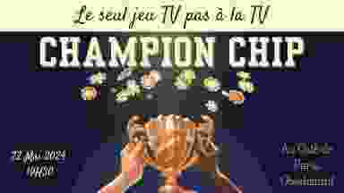 Champion Chip : Le seul jeu TV pas à la TV ! Jouez et Devenez le champion du public ! Osez le show interactif où vous jouez le rôle principal ! ----------------------------------------------------------------------------------------- Participez à "Champion-Chip", bien plus qu'un spectacle : une expérience immersive où vous êtes la star ! Un Véritable jeu TV sur plateau ou vous pouvez venir entres amis et en famille afin de vous défier sous le contrôle de l'animateur phare ! Dès votre entrée, un jeton en main, vous décidez de jouer ou d'observer. Vous serez plongé dans un univers de jeux télévisés revisité, où culture générale, tactique et défis de rapidité définissent le vainqueur. Vivez une soirée vibrante d'émotions, de rires et de suspense. Chaque représentation de "Champion-Chip" est unique, façonnée par les choix et interactions des participants. Rejoignez-nous pour un moment convivial et inoubliable, où chaque spectateur peut devenir le champion de la soirée ! - Venez participer et fouler la scène. - Jouez et devenez champion ! - Ressentez les émotions d'une soirée entre amis boosté d'adrenaline !