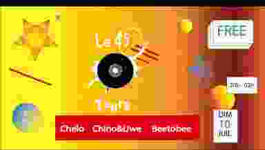 Et un dimanche soir avec une soirée 100% TECHNO! ~~~~~~~ LINE UP ~~~~~~~ 🎧 Chelo SC: https://soundcloud.com/marcelo-moscatelli/set1-luma IS: https://www.instagram.com/cheloo/ 🎧 Chino&Uwe IS: https://www.instagram.com/chino_uwe/ 🎧 Beetobee SC: https://soundcloud.com/beetobee IS: https://www.instagram.com/beetobee0/ ~~~~~~~ INFOS PRATIQUES ~~~~~~~ 🎫 Evènement GRATUIT - Vous pourrez diner sur place en dégustant tapas et burgers maisons. Notre carte => https://www.facebook.com/Le45Tours/menu - Retrouvez nous sur: ❤ Résident Advisor : https://ra.co/clubs/981214 🧡 Instagram : https://www.instagram.com/le_45tours_paris/ 💚 Soundcloud : https://soundcloud.com/tours45 💙 Mixcloud: https://www.mixcloud.com/settings/profile/ 🖲 Le 45 Tours - Bar / Restaurant / Miniclub 45 Rue de Montreuil 75011 Paris Infos/ Réservations: ☎: 09 54 89 42 32 @: tours45@gmail.com https://www.le45tours.fr Métro : Ⓜ⑧ : Faidherbe-Chaligny Ⓜ⑨ : Rue des Boulets Ⓜ①, ⑥, RERⒶ : Nation