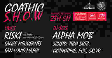 SAN LOUIS RECORDS X La Phonkerie : - GOATHIC SHOW 2 - 🐐🩸😈🗡️ Le vendredi 13 octobre de 23H à 5H Au Chinois à Montreuil LIVE/CONCERTS: 🎤 Riski AKA Metek Sages Mécréants San Louis Mafia DJ SETS: 🎛️ ALPHA MOB 🇩🇪 SIDISID Tibo Brtz (La Phonkerie) GOTNOTIME FCK B2B SXLVR Visuel live: 📽️ Quentin A. Raster Goodies et merch sur place (cassettes, tee shirts, grinders et affiches..) 📼 -------------------------- Prévente à 8€ / 10€ sur place -------------------------- 🎤 Riski AKA Metek