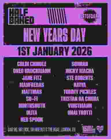 It’s that time of year again: Half Baked X Art Of Dark - NYD 2026. 94 Lock AOD 10-13 Katya 13-16 Unai Trotti 16-20 Matthias & Sofi 20-23 Jane Fitz 92 Hideout HB 12-14 Greg Brockman 14-16 Tommy Pickles 16-18 Manfredas 18-00 NorthSouth 21-00 Tristan Da Cuhna The Boat HB x AOD 13-16 Olita B2B Nev Soook 16-19 Mariiin B2B Ste Roberts 19-22 Nicky Macha B2B Sohrab Afters Colour Factory 00-05 Unai Trotti B2B Colin Chiddle 05-10 Brainsurfers (Harry McCanna & Sam Bangura)