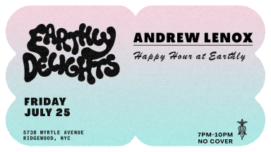 Sounds by Andrew Lenox from 7-10pm, no cover! Happy Hour drink specials include: $2 OFF WINE $5 WELL SHOTS $10 SELECT SPECIALITY COCKTAILS -- ABOUT THE ARTIST :: Andrew Lenox is a multi-genre queer artist and musician based in NYC. He grew up surrounded by church music and classical orchestras; he began composing early and played French horn throughout his youth. At 18, he joined the US Marine Corps (‘04-’12) where he served in the Marine Corps Band and as a rifleman. After his military service, he stepped away from music for a time but returned to study: first in Germany, and later the Netherlands. It was in Europe that he explored production and DJing, as a way to find new ways to express his musical ideas and connect with others, especially when finding performers was challenging. The last several years he has worked in supporting roles in audio engineering and light design, while using every opportunity working with some of the best artists in nightlife to absorb as much as possible; working with artists such as Pablo Bozzi, Octo Octa, Eris Drew, and Boris. What sets Andrew apart is his keen awareness of each moment’s emotivity. He creates a space for the crowd to relax and trust in the music, aiming to foster a deeper sense of connection and community through sound.