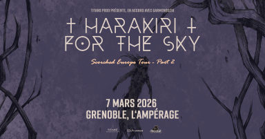 Titans Prod sont très fiers d'accueillir pour la toute première fois à Grenoble les légendes du post black metal autrichien HARAKIRI FOR THE SKY. Après avoir conquis le monde avec des albums mythiques tels que III:Trauma, Arson ou Maere, ils reviennent en 2025 avec un nouvel album Scorched Earth sorti en janvier via AOP Records. Support bientôt annoncé