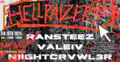 Mentally Rich Media & RANSTEEZ Presents HELLRAIZERS GENRE rap/alternative/punk TIME 8:00pm-1:30am Doors: 7:30pm AGE LIMIT 21+ ARTISTS RANSTEEZ VALEIV N1GHTCRAWL3R BAKESTER KAZAMI AKWA WHERESDANK JAKOBY GUNZ SKUXMOBB JRO NEWSLETTER