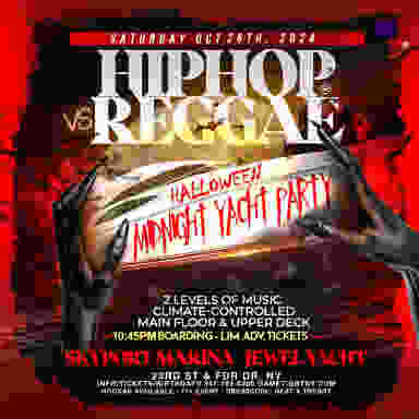 Sat Oct 26th, 2024 -The Official Hip Hop vs Reggae® NYC Halloween Saturday Midnight Jewel Yacht 2024 (347) 592-0300 About this event **** YACHT WILL BE SAILING OUT AT 11:30PM! **** The Official NYC Hip Hop vs Reggae® NYC Halloween Saturday Midnight Jewel Yacht 2024 located at 2430 FDR Dr, New York, NY 10010. Join us at the Hip Hop vs Reggae® NYC Halloween Saturday Midnight Jewel Yacht 2024 in NYC Hottests Djs while enjoying views of the Manhattan Cities Skyline! Limited Tickets ** Limited Capacity What You'll Get Customers can arrive by 10:45 p.m. for check-in with yacht Bottle service priority Full name & email for priority reservation seating. Hooka Available The yacht will be sailing. Boarding 10:45pm, Sail 11:30pm. The Yacht returns to Marina at 3:00am. Please arrive early so you don't miss the Yacht. No Refunds if you miss it! All sales are final. No Refunds. No Exceptions. ID is a Must. Drinks Bar onboard. 2 Floors of music with climate-controlled Main Floor & Upper Deck! For ticket information/ birthday parties/ engagement parties/ table reservations for Hip Hop vs Reggae® NYC Halloween Saturday Midnight Jewel Yacht 2024 call/ or text 3475920300 or GametightNY.com **** YACHT WILL BE SAILING OUT AT 11:30PM! **** DISCLAIMER PLEASE READ AND REVIEW THE TERMS OF SERVICE BY PURCHASING YOU ARE AGREEING TO OUR TERMS OF SERVICE. Buy Tickets Now: Gametightny.com nycyachtpartycruise.com halloweennyparties.com