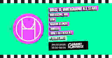 HOUSE OF UNDERGROUND OPEN AIR ! ▬▬▬▬▬▬▬▬▬▬▬▬▬▬▬▬▬▬▬▬▬▬▬▬▬▬▬ La dream team investit l'espace extérieur du cabaret sauvage pour un maxi open air, qui sera surement le dernier de l'été (ou pas). Ambiance familiale, soleil si on a de la chance, paillette pompettes et déhanché zouk love sur des gros kick de House ! COVID-19 : PASS SANITAIRE OBLIGATOIRE - AUCUNE ENTREE POSSIBLE SANS QR CODE VALABLE La billet' c'est par ici la famille : LINE UP ▬▬▬▬▬▬▬▬▬▬▬▬▬▬▬▬▬▬▬▬▬▬▬▬▬▬▬ HOUSE OF UNDERGROUND ALL STARS : Underscore_808 DVDE Maison Blanche Onibaku HDNLS aka Heich Dee + SECRET GUEST INFOS PRATIQUES ▬▬▬▬▬▬▬▬▬▬▬▬▬▬▬▬▬▬▬▬▬▬▬▬▬▬▬ Samedi 24 Juillet 2021 16h - 2h ____________ instagram.com/houseofunderground ƒ facebook.com/hof.udg sc https://soundcloud.com/houseofunderground ____________ Cabaret Sauvage 59 Boulevard Macdonald 75019 Paris Metro 7 : Porte de la Villette RER E : Pantin La direction se réserve le droit d'entrée. Interdit aux Mineurs