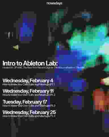 Join us for a 4-week workshop series designed to unlock the creative potential of Ableton Live. Whether you’re a newcomer or looking to refine your skills, this hands-on program will guide you through crafting your own DJ edits and mashups. Learn the art of sampling, looping, programming drum patterns, and transforming tracks into your own unique expression. After each lecture, stay for two hours of lab time, where you can connect with peers, exchange ideas, collaborate, and test your tracks on the club’s sound system. We recommend beginners commit to the entire series for the best experience, but drop-ins are welcome. Space is limited, and tickets are $20 per session. Laptops with Ableton 12 Suite and headphones are highly recommended. See promotional links for access to a free 30-Day demo of Ableton Live 12 Suite. Discounts are available upon request. This event is hosted by The New York Record Club for the Advancement of the Arts and JP Solis, co-founder of Dubspot, the first Ableton Certified Training Center in North America. /// Violence, non-consensual touching, racist, homophobic, transphobic, sexist, ageist or other discriminatory language, and leering are not allowed within our walls or in our back yard. If someone says or does something to make you feel uncomfortable while you’re here, let us know. /// Accessibility: The wheelchair entrance to our indoor space is in the driveway, which is the access point most commonly used to enter Nowadays. During parties the driveway gate is locked, so please ask staff at the street entrance for assistance with entry. All of our bathrooms are gender-neutral. There is one accessible stall indoors. Just ask any Nowadays staff member for the key, and they can show you the way.