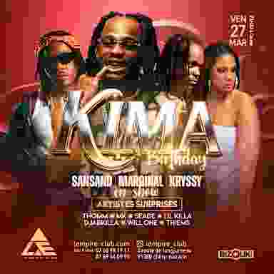 Vendredi 27 Mars 2026 KIMA BIRTHDAY SANDSAND X MARGINAL X KRYSSY EN SHOW ARTISTES SURPRISES LES MEILLEURES DJ'S AUX PLATINES THOMM- MK- SEADE- LIL-KILLA- DJABKILLA- WILL ONE- THIEMS