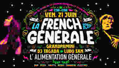 ✹ L'ALG présente : LA FRENCH GENERALE Le tour du globe de la chanson française et francophone HIP HOP - ROCK - SHATTA - CHANSON - ZOUK - MASHUPS et GRANDS CLASSIQUES LINE UP : Grandpamini Dj Tagada Ludo San 📍 𝗜𝗡𝗙𝗢𝗦 𝗣𝗥𝗔𝗧𝗜𝗤𝗨𝗘𝗦 → Adresse : 64 Rue Jean-Pierre Timbaud, 75011 Paris Métro Oberkampf (L5) / Parmentier (L3) _________________________________ 👀 𝗦𝗨𝗜𝗩𝗘𝗭-𝗡𝗢𝗨𝗦 https://www.facebook.com/lalimentation.generale https://www.instagram.com/alg_paris/ http://alimentation-generale.net/