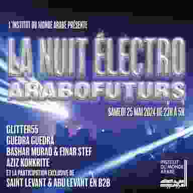 Les créations multilingues de SAINT LEVANT – arabe, français et anglais – sont influencées par la musique arabe traditionnelle, le R&B et le hip-hop. Puisant dans ses origines, le jeune artiste embrasse la pluralité de son héritage culturel, la communauté arabe mondiale et la lutte palestinienne à l'étranger. Après Deira Expérience qu’il présente au 9ème étage de l’IMA, il se produit à la Nuit Electro Arabofuturs avec Abu Levant pour un set DJ familial ébouriffant, en B2B.