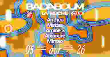 (VDJF) Dimanche 05 Avril // 23H30-07H00 CLUB — La Ruche: Anthea, Matisa MINI CLUB — LA CH!CK ——————————————————— FREE ENTRANCE FROM 4:30AM Info & Reservation : badaboum.paris ——————————————————— BADABOUM 2 Rue des Taillandiers — 75011 Paris ——————————————————— FR: L’accès à l’événement est interdit aux personnes mineures. Une pièce d’identité pourra être exigée à l’entrée. L’établissement se réserve le droit de refuser l’entrée. Fête libre, inclusive et safe. Nous offrons un espace respectueux où chacun peut s’exprimer librement. Tout comportement discriminatoire (homophobie, transphobie, racisme, misogynie, etc.) entraînera l’exclusion et des poursuites. EN: Access to the event is forbidden to minors. Identification may be required on entry. The venue reserves the right to refuse entry. A free, inclusive and safe party. We offer a respectful space where everyone can express themselves freely. Any discriminatory behaviour (homophobia, transphobia, racism, misogyny, etc.) will result in exclusion and prosecution.