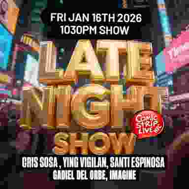 Join us for the Late Night Comedy Showcase at The Comic Strip! Get ready to laugh until your sides hurt as we bring the best of late-night comedy on January 16th, 2026 @ 10:30pm. Join us for a hilarious lineup of comedians ready to tickle your funny bone, including Cris Sosa, Ying Vigilan, Santi Espinosa, Gadiel Del Orbe, & Imagine.