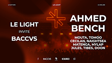 LE LIGHT revient pour sa 5ᵉ édition ✨ Cette fois-ci, LE LIGHT invite BACCVS. Après avoir marqué des lieux emblématiques comme le Palais de Tokyo, BACCVS rejoint LE LIGHT à La Nuit Paris. Une expérience immersive et sensuelle, portée par une énergie collective, où les corps se rencontrent, où la musique monte progressivement, et où la tension ne cesse de s’intensifier. Dans un espace rassemblant près de 800 à 900 personnes, la nuit gagne en intensité, jusqu’à basculer dans une énergie plus brute et hypnotique à l’approche du matin. En tête d’affiche : Ahmed Bench Une programmation pensée comme un véritable mouvement — entre groove, chaleur et intensité — évoluant naturellement vers des sonorités tech house en fin de nuit. Une nuit dense, élégante et envoûtante. 🎶 LINE-UP Ahmed Bench (Headliner) Matenga · Mouta · Tomoo · Doon Tibes · Cecilan · Mylap · Jules Austruy · Nightsea 😎 DRESS CODE : CHIC & ENVOÛTANT Tenues élégantes exigées. Pas de joggings ni de shorts. ⏰ 23h00 – 6h00 📍 La Nuit Paris 🚇 Madeleine / Opéra / Auber 🔞 Accès réservé aux majeurs – pièce d’identité obligatoire. La direction se réserve le droit d’admission. 📸 En participant à l’événement, vous acceptez de potentiellement apparaître sur nos contenus.
