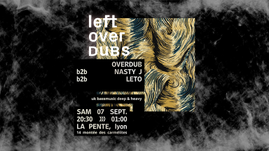 LEFTOVER DUBS #8 w/ Overdub & Nasty J & Leto BASS MUSIC NIGHT... Uk Garage, uk Techno, uk Funky, Grime, Deep Dubstep, Breaks, Footwork, Jungle, Drum and Bass, Dancehall Parce que South London c’est trop loin, on vous invite à retrouver le genre né de la rencontre du Dub, du Garage et de la Jungle sur le system de La Pente. Venez tester nos dubplates et réclamer les pullups, on sera Deep & Heavy. — LINE UP — 👉 Overdub - Rhyzome Soundsystem, Bass Paradize https://soundcloud.com/egreg-re/bass-paradize-local-echo-invite-mafille-decembre-2023 👉 LeTo - [re]sources, Noizion, Syrinx, True Lyon Crew https://soundcloud.com/leto 👉 Nasty J - Polaar, Noizion, Impact, True Lyon Crew https://soundcloud.com/juniorbass Au programme, un maximum de Back to Back à 6 mains, dubby & weighty & bold 📍 LA PENTE : 14 montée des Carmélites, 69001 LYON 📆 Samedi 7 Septembre 2024 ⏰ 20h30 - 01h 🎫 Entrée prix libre ❤️ BAR ANTI RELOU 🖕 Nos événements sont des espaces de liberté, d'égalité et de bonheur, c'est pourquoi les actions ou comportements suivants ne sont pas tolérés : racisme, sexisme, transphobie, homophobie, misogynie, discriminations, intolérances, ainsi que l’irrespect des règles de consentement.