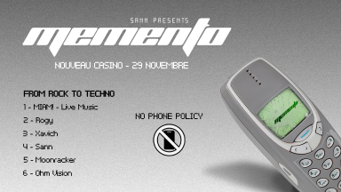 Memento : De la live musique à la musique électronique dans un lieu immersif sans téléphone. --- Memento revient occuper le Nouveau Casino ce 29/11, de 22h à 5h. Le concept reste le même, un moment unique et festif, une expérience musicale unique mélangeant les genres dans un espace immersif sans téléphone. Soyez fous, soyez vous-même, et surtout, venez vivre un Memento unique 🎵 CE QUI VOUS ATTEND : •⁠ ⁠Une progression musicale du funk au techno •⁠ ⁠Une expérience immersive et authentique, sans téléphone (tous les appareils photos des téléphones seront stickés à l'éntrée) •⁠ ⁠Des performances lives, des DJ sets et des sets hybrides •⁠ ⁠Un système son L-acoustics 👾 LINE-UP 👾 - MIAM! - live music - Rogy - Xavich - Sann - Moonraker - Ohm Vision --- ℹ️ INFOS PRATIQUES --- Nouveau Casino, 109 Rue Oberkampf, 75011 Paris 29 novembre, 22h-5h Événement réservé aux personnes majeures Politique sans téléphone pour une expérience authentique Préparez-vous à une nuit où chaque artiste vous fera découvrir son univers unique. Memento, c'est l'opportunité de vivre une expérience électronique hors du commun dans un cadre intime et immersif. --- https://www.instagram.com/presentsmemento