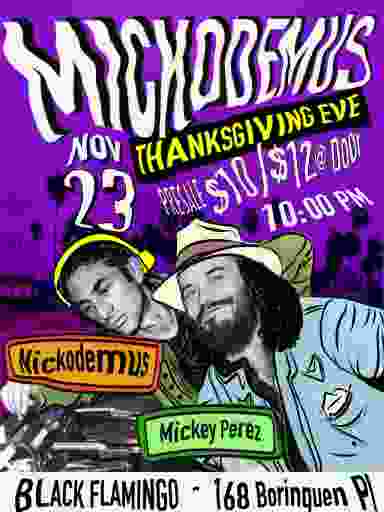 Mickey Pérez (BeBop Poru/Opposite People) + Nickodemus (Turntables on the Hudson/Wonderwheel Recordings) present the world premiere of MICKODEMUS on Thanksgiving Eve at Black Flamingo in Williamsburg, Brooklyn. A night of dance music old school NYC style with breaks, Disco, House from the US mixed with flavors from Africa, Latin America, Brasil & The Caribbean from 10-4am.