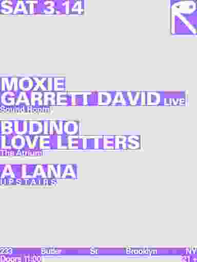 Moxie + Garrett David [Live] / Budino + Love Letters / A Lana