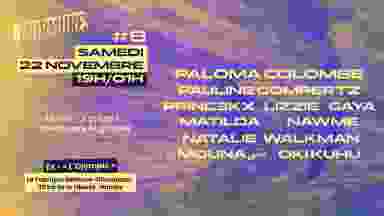 Depuis janvier 2025, MURMURES propose des concerts mensuels dans des lieux atypiques, à la programmation uniquement composée de femmes et de personnes issues des minorités de genre. Pour la première fois à Nantes et dans un lieu culturel mythique (L'Olympic), découvrez un line-up de 10 DJs, exclusivement féminin, réparti sur 2 scènes : SCENE "break ravy" Paloma Colombe Pauline Gompertz b2b Lizzie Matilda b2b Princ3kx Nawme b2b Gaya SCENE "groove" Natalie Walkman Oki Kuhu b2b Mounaمُنى Cet événement se déroulera à la Fabrique Bellevue-Chantenay (quartier "bas Chantenay", à quelques pas du Macadam, du CO2 ou encore du LAB), anciennement appelé "L'Olympic", une salle de concerts nantaise culte qui a notamment accueilli Daft Punk, Dolly, Emilie Simon, Gossip, Keren Ann, Muse, Coldplay, Placebo, Philippe Katerine et toute la scène locale des années 1990 et 2000... Si vous en avez les moyens, nous vous proposons un tarif spécial "SUPPORT YOUR WOMEN SCENE" qui vous permet de contribuer un peu plus fort à notre initiative et de soutenir d'avantage encore la scène MINT (Meuf intersexe non-binaire et trans).