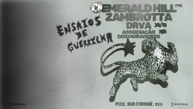 A Noite Ruim tá de volta e o primeiro rolê de 2026 fica com a turnê "Ensaios de Guerrilha", das bandas Zambrotta (PE) e Emerald Hill (PB). No capítulo recifense dessa tour pelo Nordeste, apresentam-se também, os representantes do roque triste experimental, DRVA, e a promessa do Shoegaze pernambucano, Associação dos Moradores. A noite promete uma afirmação da grandeza do rock alternativo independente nordestino, cujo diferencial é a ousadia por existir e resistir diante dos impasses. Tudo vai rolar no dia 30/01 (sexta-feira), pontualmente a partir das 19h da noite, lá no Pico (Rua Itaimbé, 253). Produção da Noite Ruim Records, celebrando a ruindade que chega para abalar seu começo de ano.