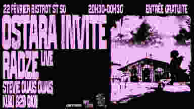 C’est au Bistrot ST SO que le jeudi 22 février prochain raisonnera la voix d’OSTARA 🔥 Fort d’un voyage musical de bientôt 3 ans au cours duquel nous avons déjà partagé tant d’émotions avec vous sur la scène Lilloise… Vous donner rendez-vous dans ce lieu culturel emblématique de la ville nous semblait incontournable ! Un lieu de vie si particulier qui unit et réunit chacun d’entre nous. ❤️ Pour cette première date à ST SO, OSTARA, fidèle à ses habitudes à prévu de vous en mettre plein les oreilles en invitant RADZE, un artiste talentueux en pleine ascension qui aura l’occasion de performer en format LIVE pour la première fois à Lille ! Et pour l’accompagner, vous pourrez bien entendu compter sur les DJ résidents du collectif qui seront tout autant déterminés à vous régaler : DKN b2b KUKI ainsi que STEVIE OUAIS OUAIS. ⚫ RADZE (live) Basé en Belgique, RADZE fait partie de ces disciples du son distordu, si caractéristique aux scènes belge et hollandaise. Un héritage fait de 303 grinçantes, de rythmiques incisives et de synthés épiques, qu’il mélange habilement au groove immuable de la tekno. Que ce soit en tant que producteur, performeur live ou DJ, c’est à travers une utilisation minimaliste de ce cocktail bien particulier que son style trouve toute sa singularité. Puisant dans l’acidcore, la tribe ou le hardcore le meilleur que l’on puisse y trouver, son univers combine chacun de ces éléments et leur donne vie dans une chronologie imparable où efficacité rime avec imprévisibilité. Au cours des dernières années, ses fréquences analogiques ont trouvé la voie de certains labels parmi les plus réputés du genre, tels que Hashtek23, Mysteries ou CTK, l’amenant à jouer régulièrement dans les soirées acid les plus respectées de Belgique. Avec une force de création en constante évolution et une volonté radicale de marche en avant, tout porte à croire qu’il n’est plus qu’une question de temps avant que Radze propage son acid-tekno hybride sur tout le continent. IG : https://www.instagram.com/radze_live SC : https://on.soundcloud.com/AohiynF91wgTQjSr9 🔊 ⚪ DKN DKN est un Producteur et dj basé à Lille, co-fondateur d’Ostara Crew avec lequel il organise des événements dans la métropole Lilloise, il prend également part dans le projet Undertake Records, un label caritatif de musique électronique. Il puise son inspiration dans un amas de genre mêlant l’early hardstyle, la rave ou encore l’acid. Ses productions récentes ont d’ailleurs déjà reçu le soutien d’artistes renommés tels que Jacidorex, Boys Noize, Charlie Sparks, Jean Terechkova, WNDRLST et bien d’autres. IG : https://www.instagram.com/dkn.music SC : https://on.soundcloud.com/eyLc1HipZvt7j9BF7 🔊 ⚫ KUKI Jeune DJ lilloise, KUKI est passionnée de musique électronique depuis plusieurs années. Ses sets aux sonorités rétro, allient early hardstyle/hardcore et hardtrance. Elle s’est principalement fait remarquer lors des soirées du collectif Ostara dont elle est cofondatrice. Quelques années plus tard elle prend part à la création du label Undertake Records. IG : https://www.instagram.com/kukij_ SC : https://on.soundcloud.com/fFcUcYudtajk2Ste8 🔊 ⚪ STEVIE OUAIS OUAIS DJ lillois et membre co-fondateur du collectif OSTARA, Stevie Ouais Ouais s’inspire par de genres tels que la trance, l’acid ou encore breakbeat. Mélange harmonieux d’une techno groovy, mélodieuse et rythmée, chacun de ses sets vous promet un ensemble de sonorités faisant monter la température au fil du temps. IG : https://www.instagram.com/hugostv SC : https://soundcloud.com/stevie-ouais-ouais 🔊