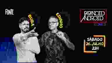 PARANOID ANDROID :: Sábado 26.JULHO :: 22h Vem aí o dueto inédito dos DJs BUBA & EDINHO em Full Set para a próxima Paranoid Android. O indicado para melhor DJ POP e MELHOR FESTA POP e o Vencedor da Categoria DJ ROCK do Prêmio Noite Rio do ano de 2012, Juntos e misturados com a promessa de que não importa qual a sua geração ou se você é #TEAMbuba ou #TEAMedinho, você vai ter uma das mais icônicas noites da sua vida! Só vem... ROCK | POP-ROCK | INDIE POP | CLASSIC ROCK DOSE DUPLA DE GIN TÔNICA ATÉ 00H PISTA 1 - PARANOID ANDROID PISTA 2 - SINUCA | PING PONG | ARCADE | TOTÓ / (Liberados) → LINE UP DJ Buba @djbuba DJ Edinho @edinho__dj −−−−−−−−−−−−−−−−−−−−−−−−−−−− → INGRESSOS • Antecipados COMPRE AQUI: • R$25 • R$30 (+ 1 Caipirinha) Na Hora: R$ 40 (até 01h) R$ 50 (após 01h) !!FALE COM A GENTE!! UTILIZE O EMAIL: falecomafesta@gmail.com OU PELO WHATSAPP: 21 96409-7383 → DESPEDIDAS DE SOLTEIRO - Nos envie um email falecomafesta@gmail.com e saiba como comemorar na nossa festa! −−−−−−−−−−−−−−−−−−−−−−−−−−−−− → COMEMORE SEU ANIVERSÁRIO Aniversariantes entre 15 de JULHO & 10 de AGOSTO são VIPs e podem enviar a lista para: falecomafesta@gmail.com até às 22h do dia da festa. O aniversariante é VIP Os amigos do aniversariante pagam o preço de desconto a noite toda. (R$ 25) Aniversariantes com 10 convidados ou mais ganham 1 Garrafa de espumante ou um balde de Heineken! - Somente para maiores de 18 Anos - Aceitamos cartões na entrada e consumação no bar.