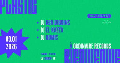 ✧ 𝑃𝐿𝐴𝑆𝑇𝐼𝐶 𝐵𝐼𝐸𝑁𝑉𝐸𝑁𝑈𝐸 𝑡𝑜 𝑂𝑅𝐷𝐼𝑁𝐴𝐼𝑅𝐸 𝑅𝐸𝐶𝑂𝑅𝐷𝑆 - [22HOO - O3H3O] ✧ O9/O1/2O26 Espace Club, la Kulture - 9 rue des Bateliers, 67OOO SxB Entrée : 5€ < OOHOO > 7€ Trois potes réunis par une passion bien ancrée : la house, celle des clubs new-yorkais et des vibes US garage qui tapent droit au cœur. Avec les soirées Ordinaire, on essaie à notre manière. 𝐵𝐸𝑁 𝐷𝐼𝐺𝐺𝐼𝑁𝑆 Ben Diggins, secret bien gardé de Rotterdam, digger de longue date et fondateur du label Clinical Records, il façonne une house nourrie par les racines 90s / early 2000. En DJ set : sélections millimétrées où les « track ID ? » s’enchaînent ! + 𝐸𝐿 𝐾𝐴𝑍𝐸𝐷 & 𝑁𝑂𝑀𝐼𝑆