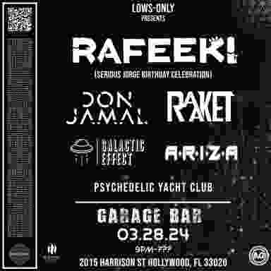 Join us next Thursday to celebrate the birth of Rafeeki aka Serious Jorge! incredibly stacked line up featuring Raaket, Don Jamal, Galactic Effect, Ariza & Psychedelic Yacht Club. This will be a family affair, all proceeds go to the birthday boy and expenses. show out, show up and support the underground!